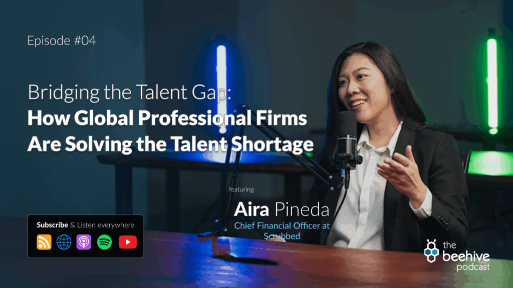 The finance and accounting industry is facing a severe talent shortage, one that is affecting businesses all over the world. On a recent episode of The Beehive Podcast, Aira Pineda, the Chief Financial Officer of Scrubbed, joined host William Lagman to discuss what’s causing the gap and how global professional firms are stepping up to provide those solutions.
